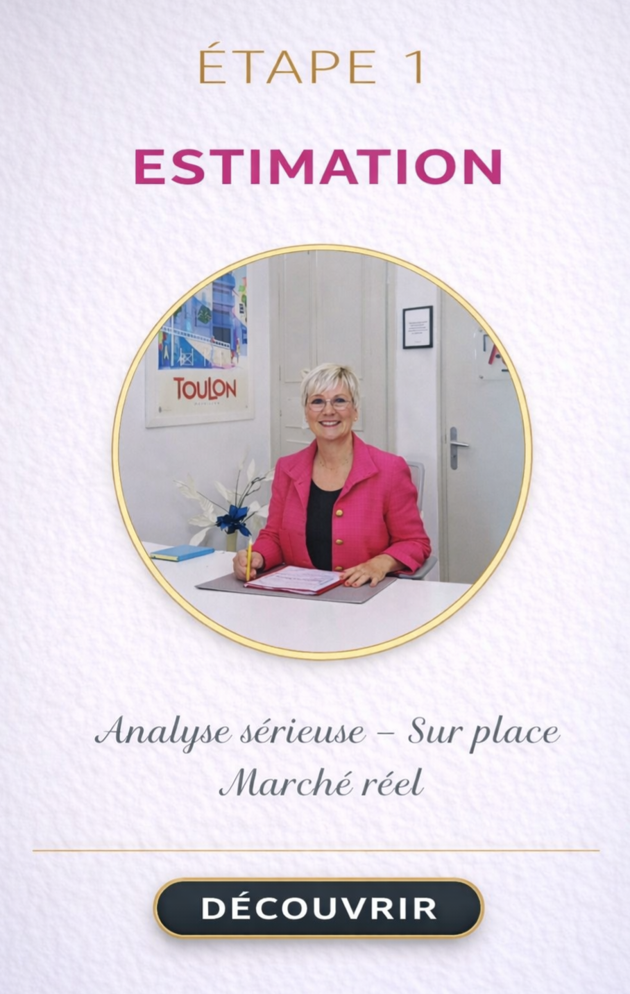 Responsable de l’agence, elle pilote personnellement chaque vente de A à Z, avec une implication directe à chaque étape.