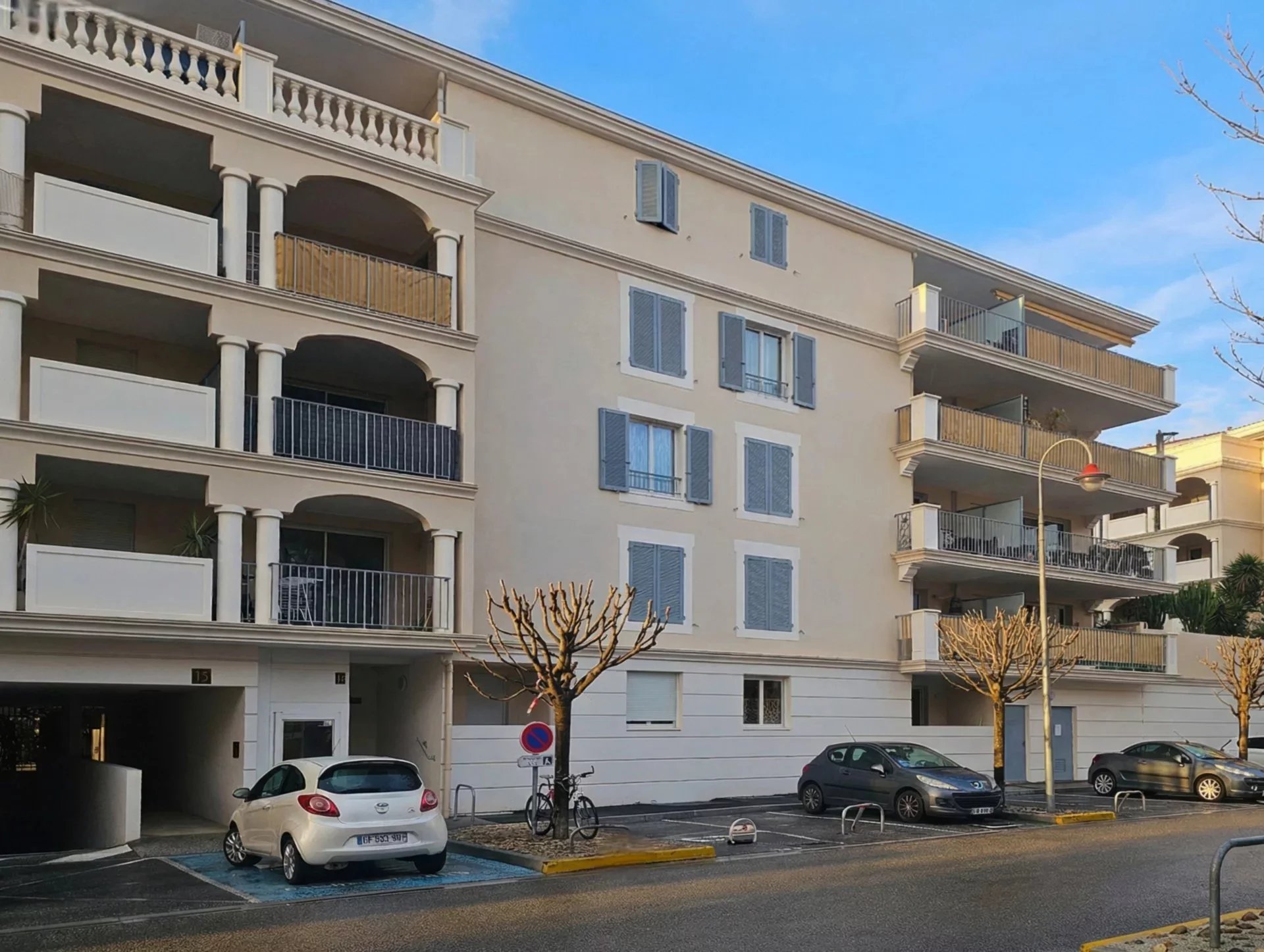 Situé à Hyères, au sein de la résidence de standing « Le Patio Michelangelo », cet appartement T2 de 45 m² se trouve au 3ᵉ étage avec ascenseur, avec accès direct depuis le parking privatif en sous-sol.